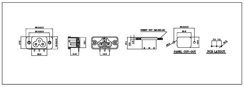 • IEC C13/C14 Inlet/Outlet (snap-in type)