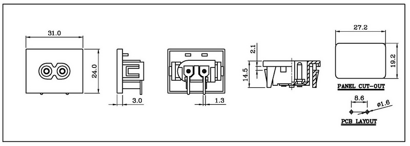 • IEC C13/C14 Inlet/Outlet (snap-in type)