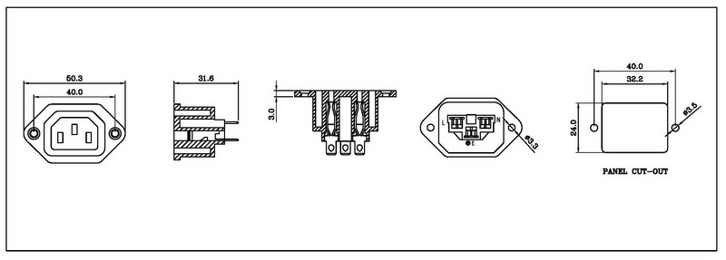 Standard: IEC 60320 F Rating: 15A 250V AC / 10A 250V AC Insulation Resistance: 100MΩ 500V DC / 1 minute Dielectric Strength: 2000V AC / 1 minute Housing Material: Thermoplastic 94V-2~V-0