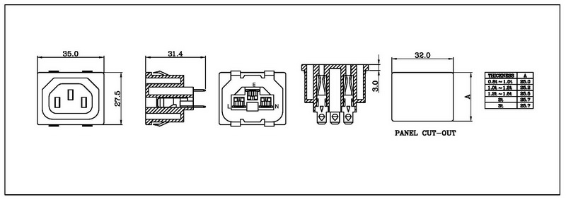 • IEC C13/C14 Inlet/Outlet (snap-in type)