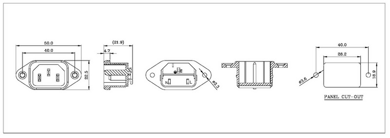 • IEC C13/C14 Inlet/Outlet (snap-in type)