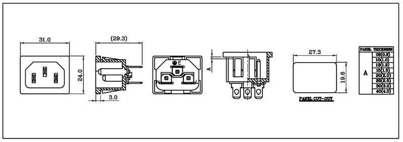 • IEC C13/C14 Inlet/Outlet (snap-in type)