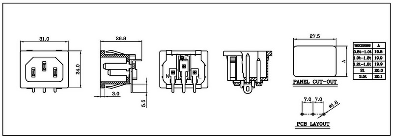 • IEC C13/C14 Inlet/Outlet (snap-in type)