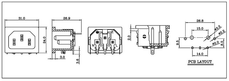 • IEC C13/C14 Inlet/Outlet (snap-in type)