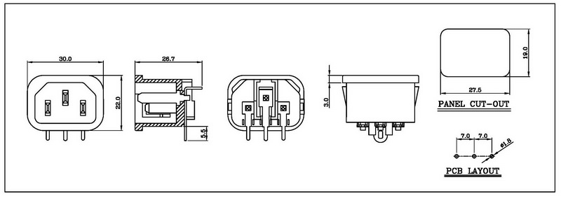 • IEC C13/C14 Inlet/Outlet (snap-in type)