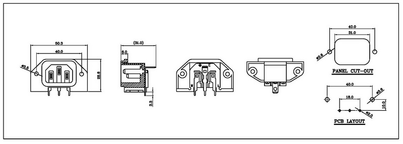• IEC C13/C14 Inlet/Outlet (snap-in type)