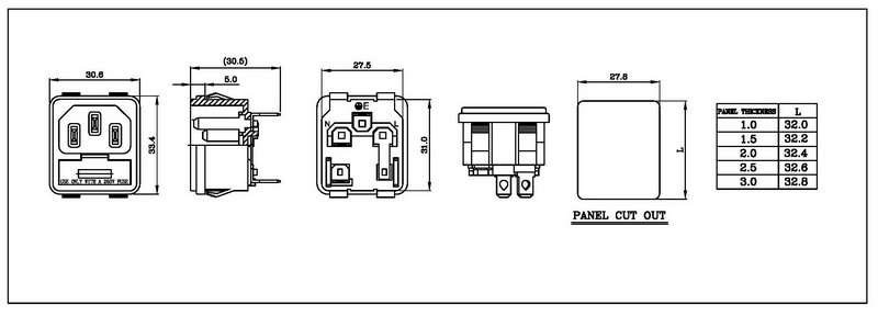 • IEC C13/C14 Inlet/Outlet (snap-in type)