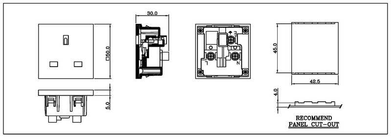 Standard: BS 1363 Rating: 13A 250V AC Insulation Resistance: 100MΩ 500V DC / 1 minute Dielectric Strength: 2000V AC / 1 minute Housing Material: Thermoplastic 94V-2~V-0 Part No. : RB-02(B00) Color : Black / White