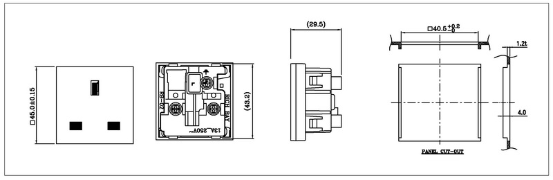 Rating: 13A 250V AC Insulation Resistance: 100MΩ 500V DC / 1 minute Dielectric Strength: 2000V AC / 1 minute Housing Material: Thermoplastic 94V-2~V-0 Panel Cut-out: 45X45mm Part No. : RB-02(B204) Color : Black / White