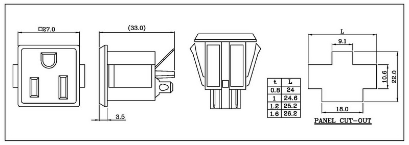 NEMA (UL) SOCKET, 5-15R/ 5-20R/1-15R, 15A/20A