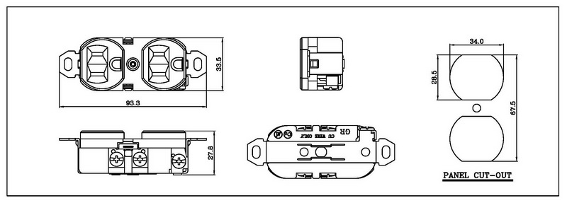 Standard: UL 498 Rating: 15A 125V AC Insulation Resistance: 100MΩ 500V DC / 1 minute Dielectric Strength: 2000V AC / 1 minute Housing Material: Thermoplastic 94V-2~V-0