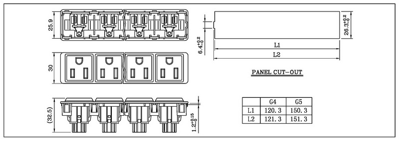 • Ganged IEC 60320 Appliance Outlet