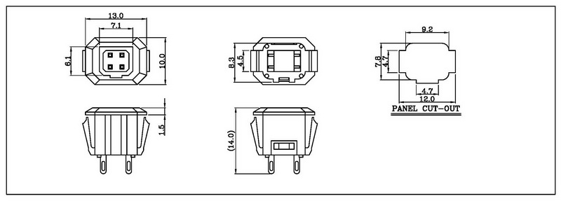 Rating: AC DC 30V 0.5A Contact Resistance: 20MΩ Max. Insulation Resistance: DC 100V 100MΩ / 1 minute Dielectric Strength: 150V AC / 1 minute Housing Material: Thermoplastic 94V-2~V-0