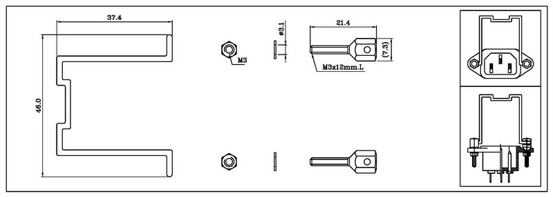 IEC C14 AC Inlet+Switch ,Snap-in/Screw type