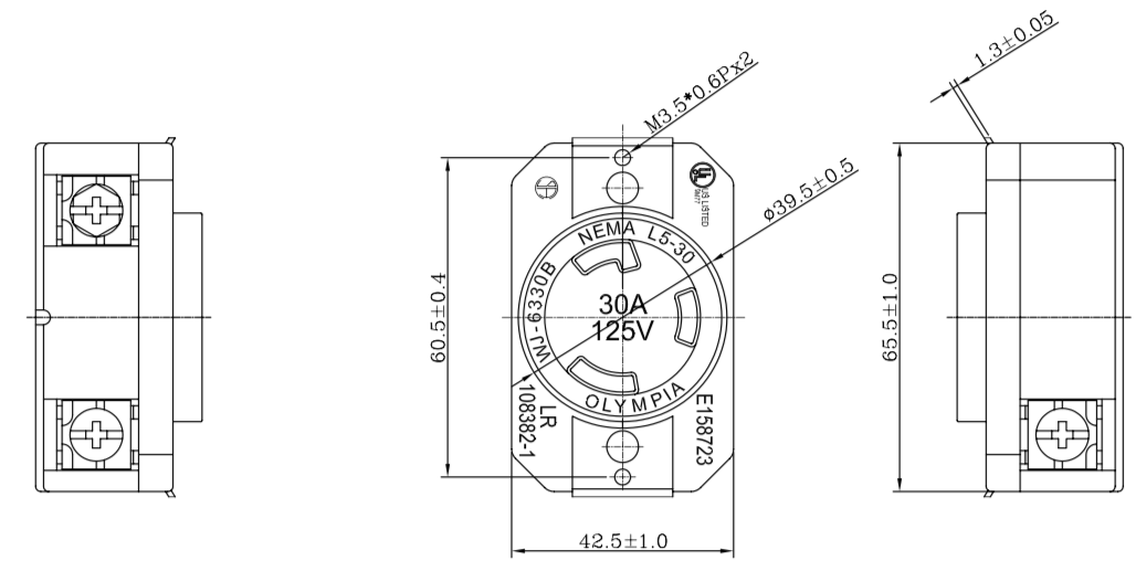 Part number: WJ-6330B Specification:30A 125V AC 2Pole 3Wire Grounding NEMA L5-30 Certifcation: UL