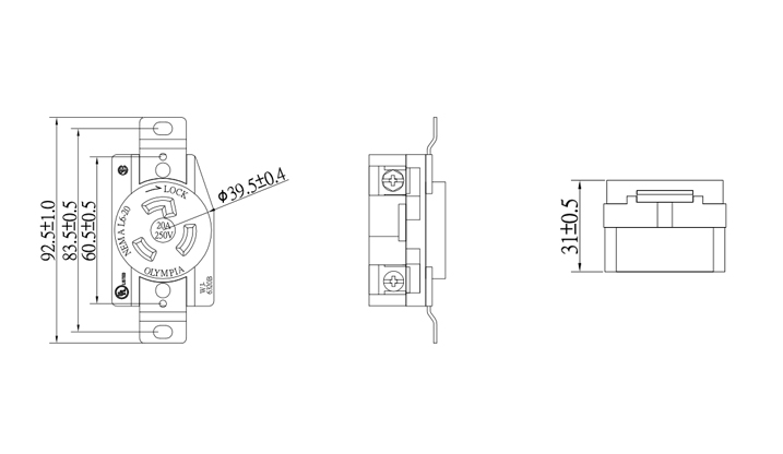 Part number: WJ-6320B Specification:20A 250V AC 2Pole 3Wire Grounding NEMA L6-20 Certifcation: UL